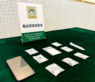 Conforme as informações recebidas, a Divisão de Investigação e Combate ao Tráfico de Estupefacientes tomou conhecimento que um residentede Macau estaria a trazer clandestinamente “Ice” e cartuchos de cigarro electrónico contendo “Etomidate” de Hong Kong para serem vendidos em Macau.